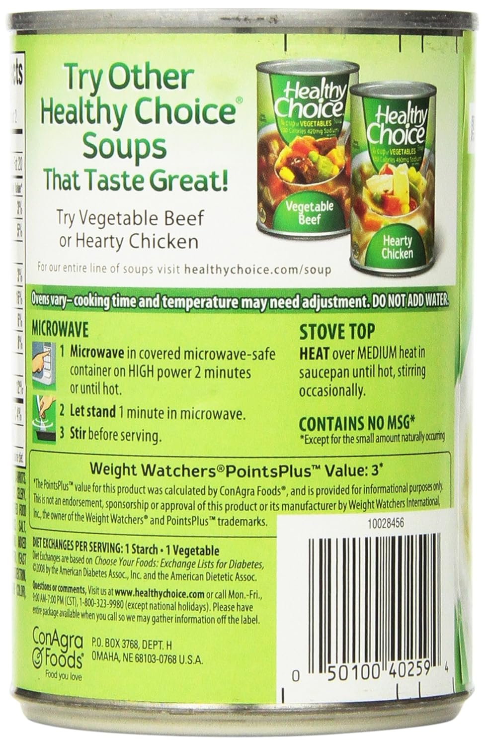 If you prefer meat in your soup, healthy choice also has a vegetable beef soup, as well as a variety of chicken soups.